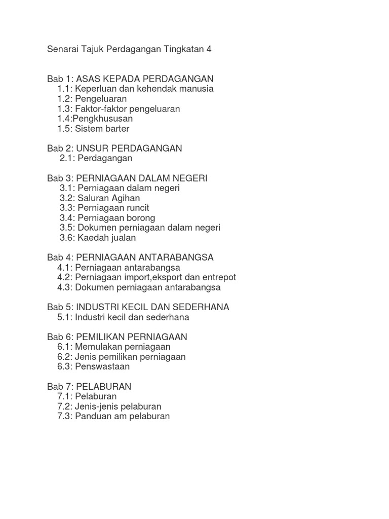 Senarai Tajuk Perdagangan Tingkatan 4 Pdf